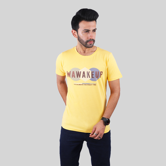 "WA WAKE UP" Crew Neck T-Shirt (Yellow)