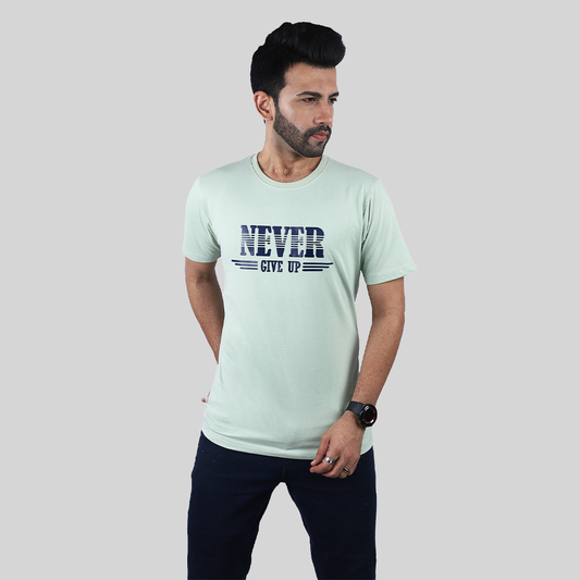"NEVER GIVE UP" Green Crew Neck T-Shirt